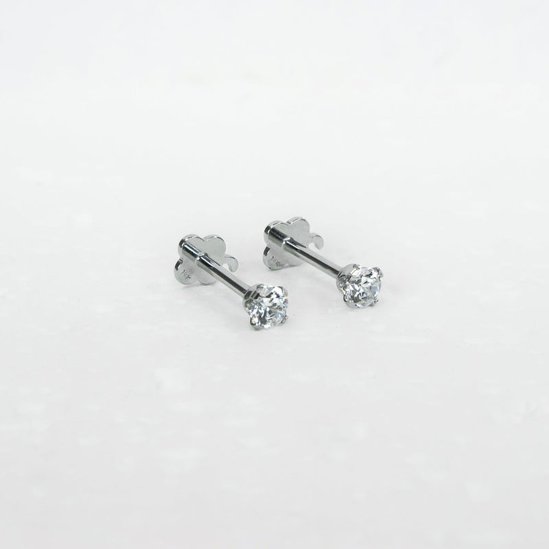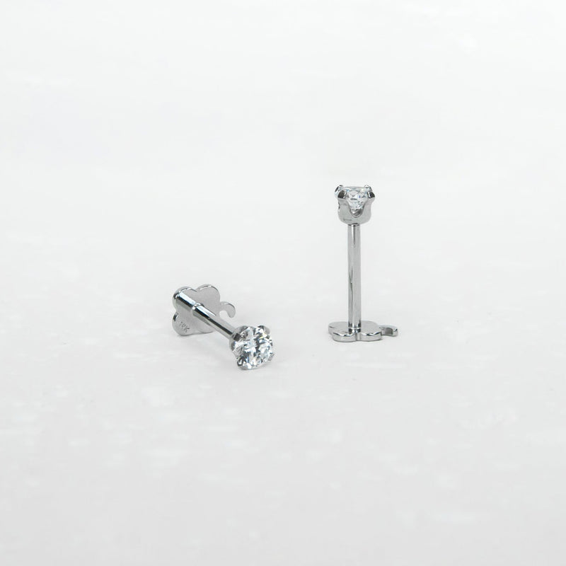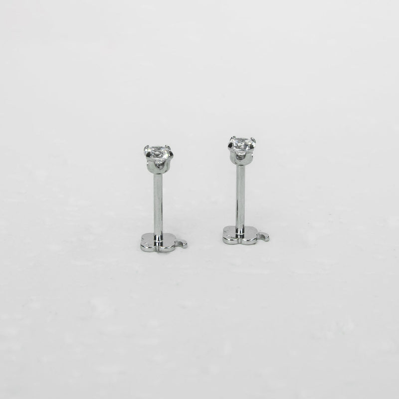 14K White Gold Screwtube 3mm+8mm (per pair)