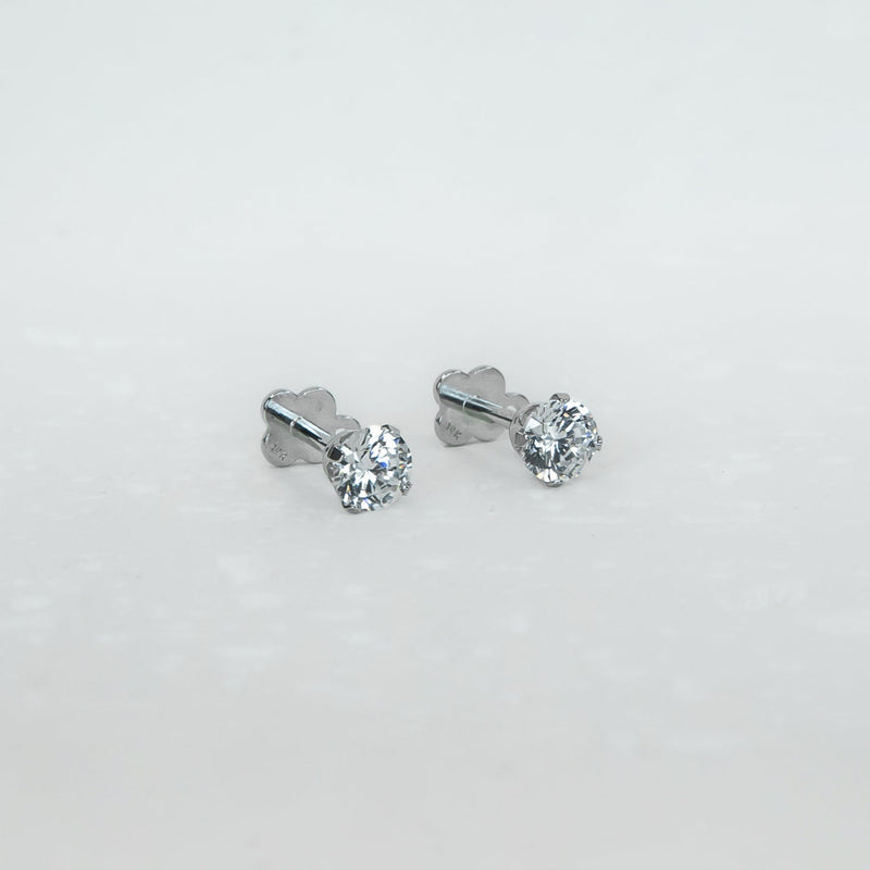 Crafted in solid 14k white gold, these flatback earrings are designed for everyday comfort and long-lasting wear. The secure screwback closure ensures they stay in place, while the smooth flatback design makes them ideal for sensitive ears. Safe, stylish, and easy to wear—perfect for adding a touch of shine to any look.