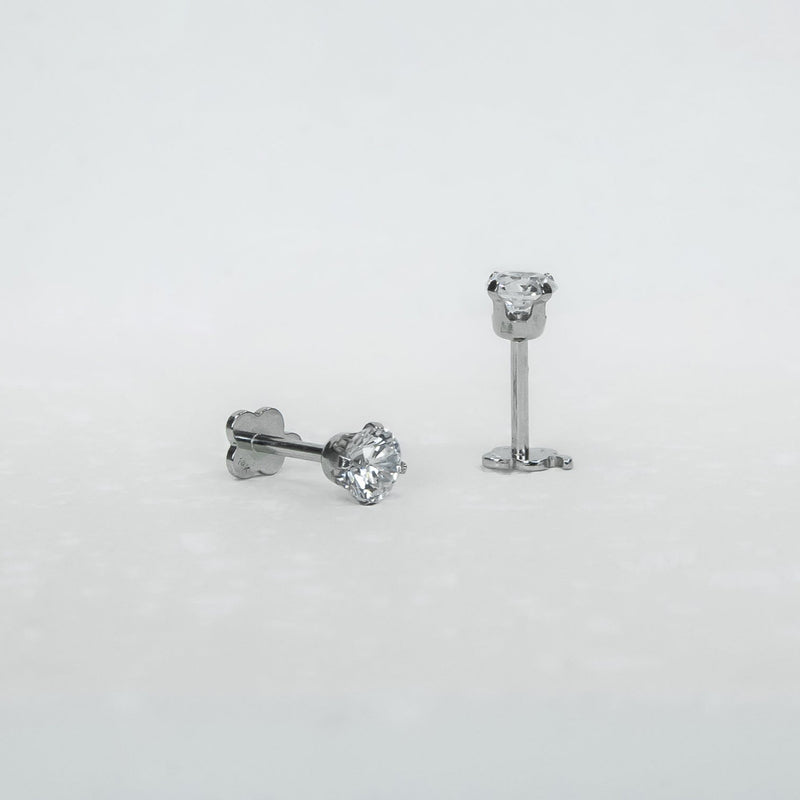 14K White Gold Screwtube 4mm+6.5mm (per pair)