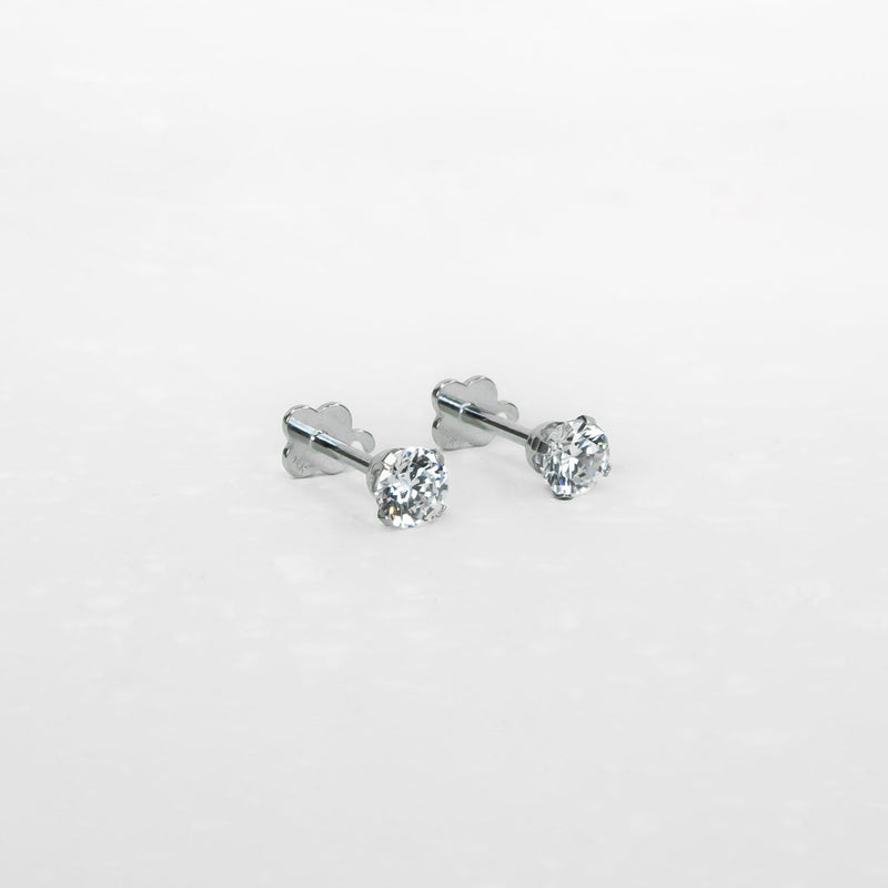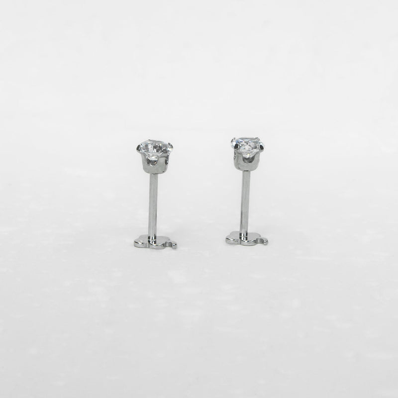 Crafted in solid 14k white gold, these flatback earrings are designed for everyday comfort and long-lasting wear. The secure screwback closure ensures they stay in place, while the smooth flatback design makes them ideal for sensitive ears. Safe, stylish, and easy to wear—perfect for adding a touch of shine to any look.