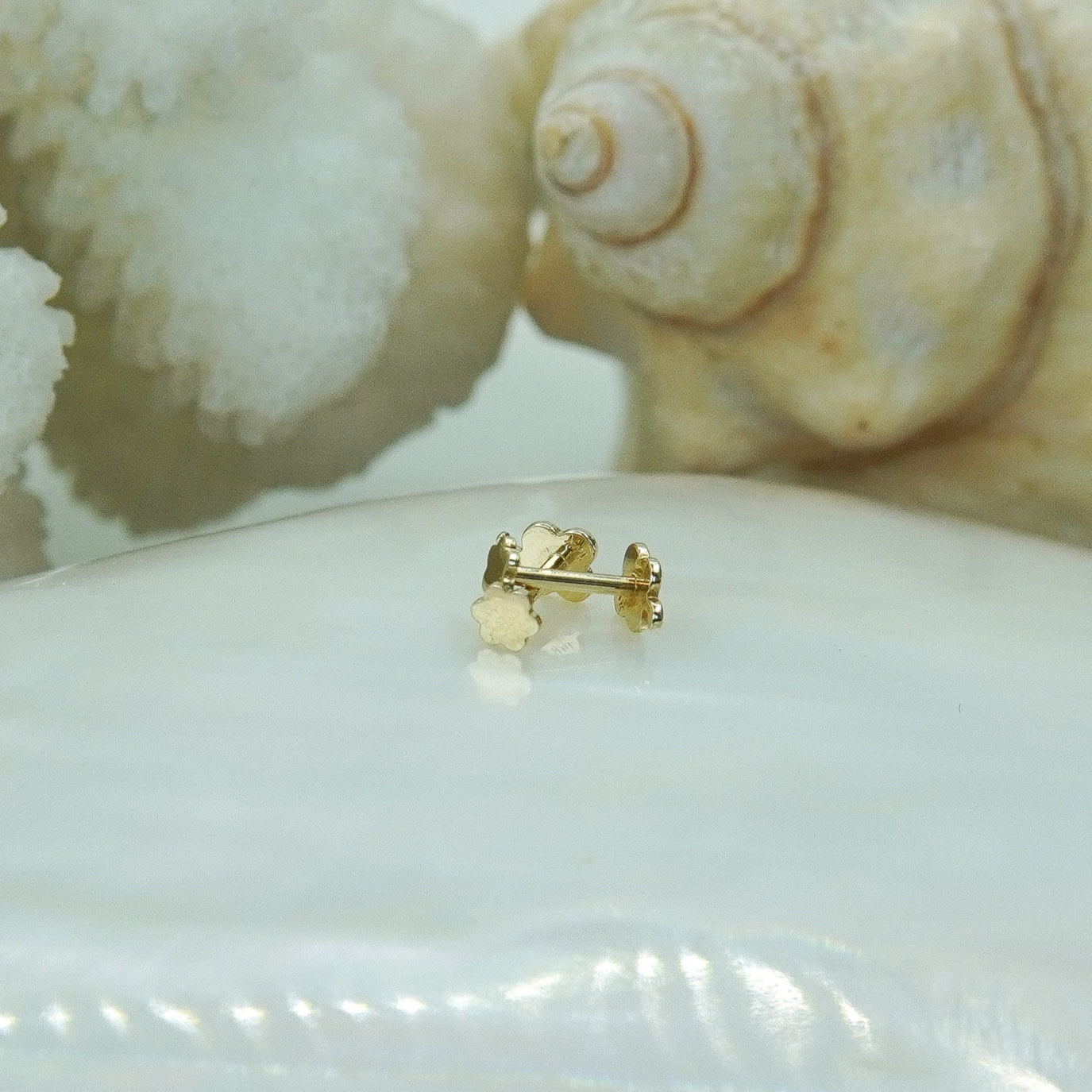 Crafted in solid 14k gold, these flatback earrings are designed for everyday comfort and long-lasting wear. The secure screwback closure ensures they stay in place, while the smooth flatback design makes them ideal for sensitive ears. Safe, stylish, and easy to wear—perfect for adding a touch of shine to any look.