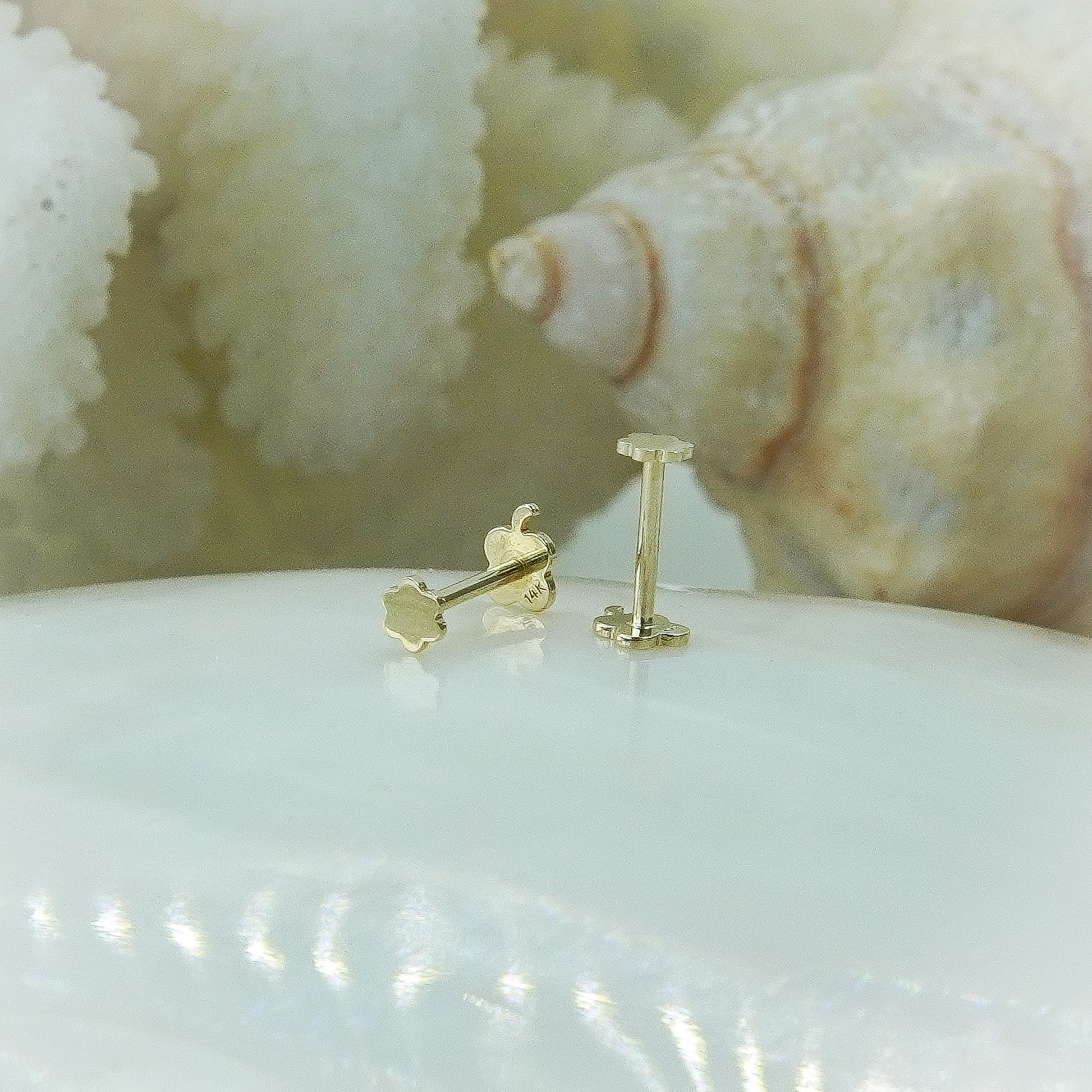 Crafted in solid 14k gold, these flatback earrings are designed for everyday comfort and long-lasting wear. The secure screwback closure ensures they stay in place, while the smooth flatback design makes them ideal for sensitive ears. Safe, stylish, and easy to wear—perfect for adding a touch of shine to any look.