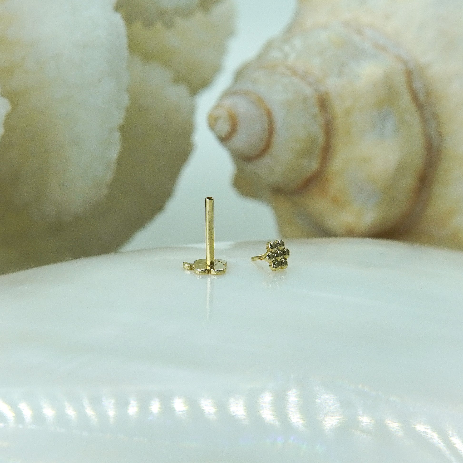Crafted in solid 14k gold, these flatback earrings are designed for everyday comfort and long-lasting wear. The secure screwback closure ensures they stay in place, while the smooth flatback design makes them ideal for sensitive ears. Safe, stylish, and easy to wear—perfect for adding a touch of shine to any look.