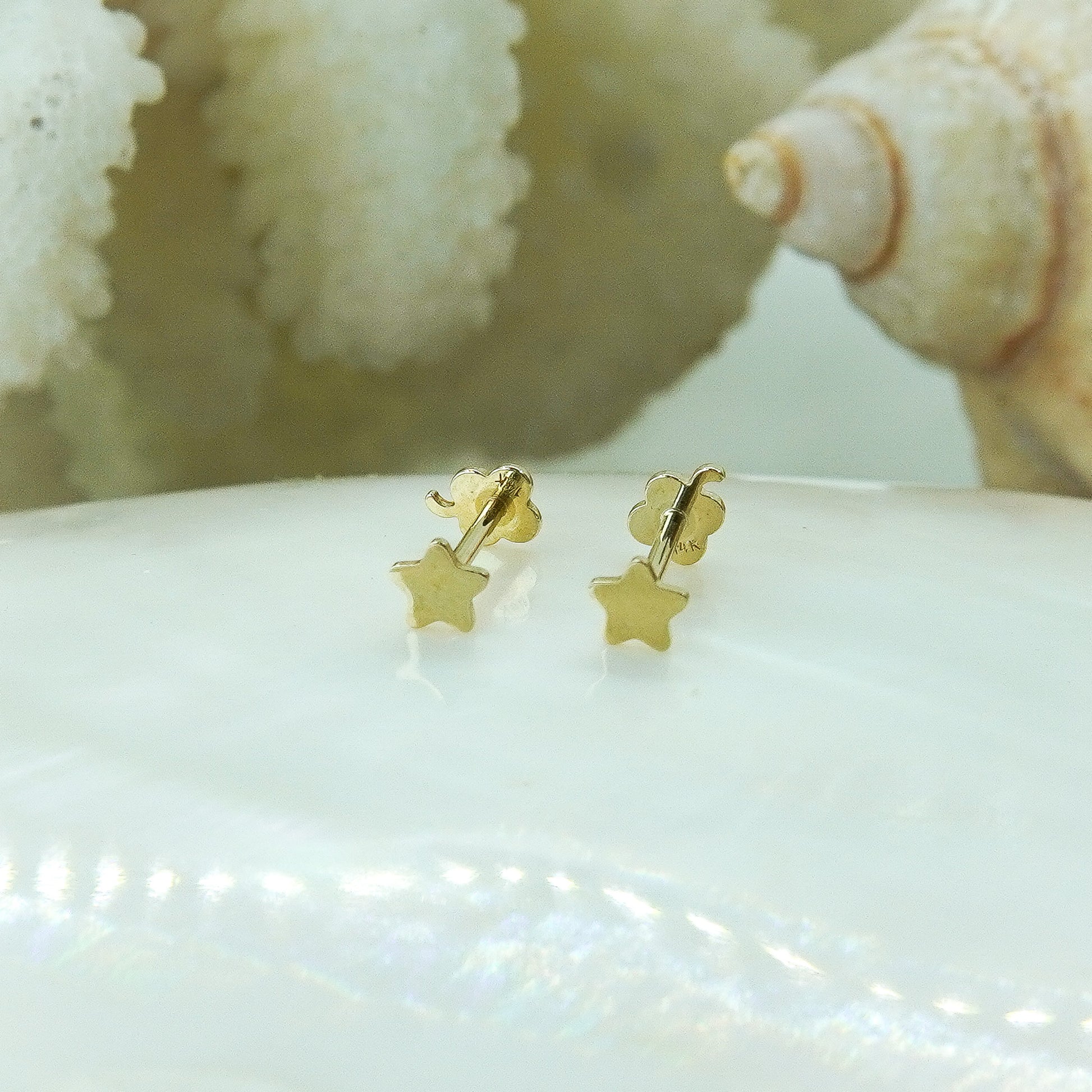 Crafted in solid 14k gold, these flatback earrings are designed for everyday comfort and long-lasting wear. The secure screwback closure ensures they stay in place, while the smooth flatback design makes them ideal for sensitive ears. Safe, stylish, and easy to wear—perfect for adding a touch of shine to any look.