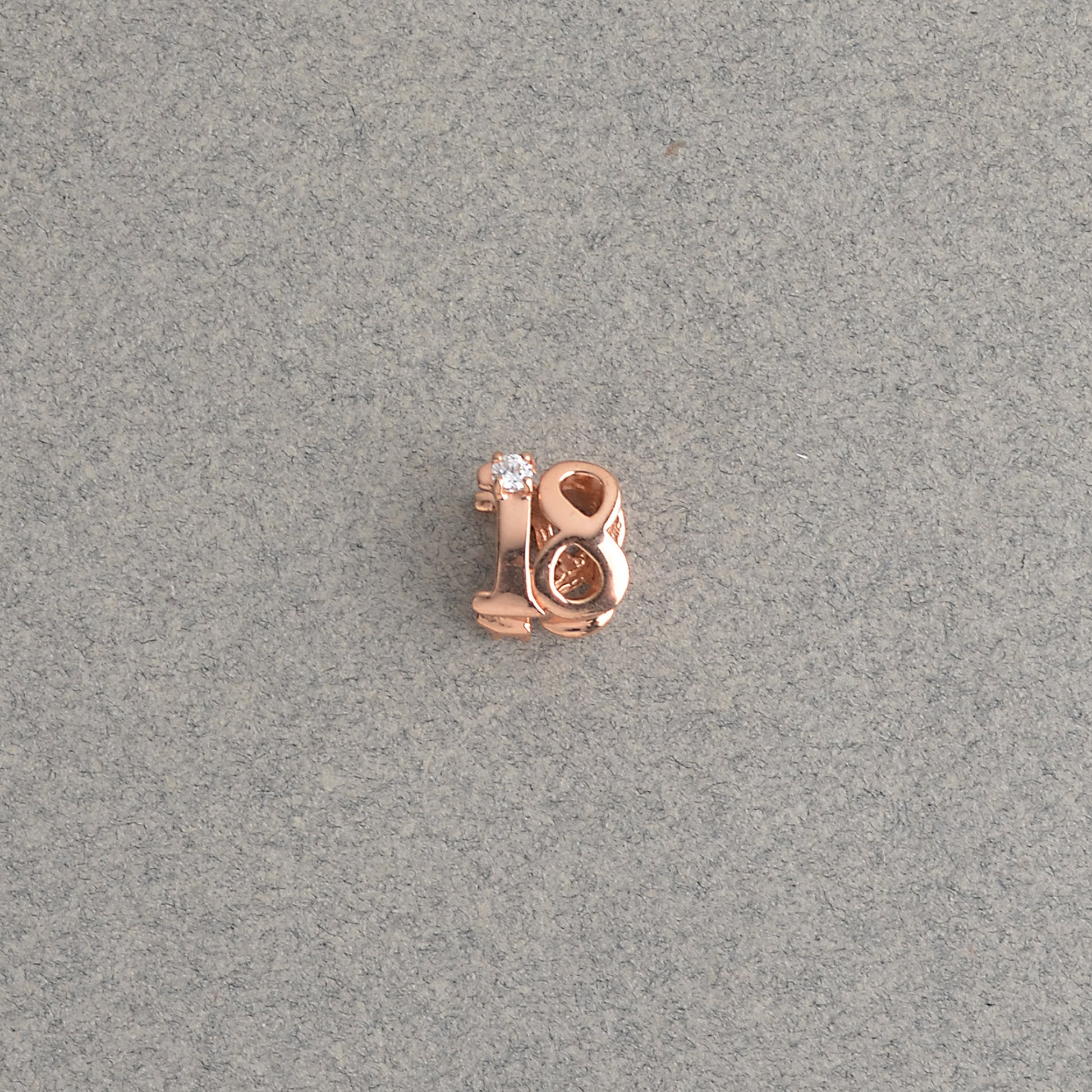 Introducing the exquisite 14K silver plated rose gold B Charm 18. Adorned with dazzling Cubic Zirconia, this piece radiates elegance and charm.